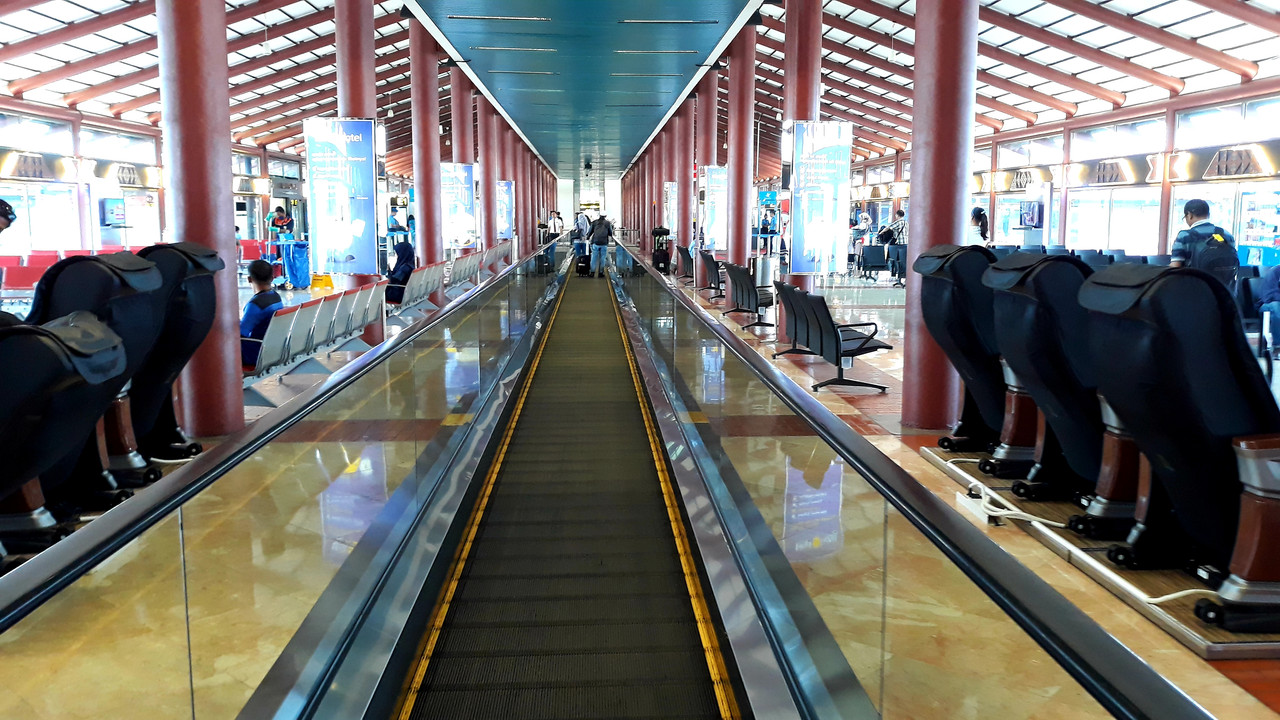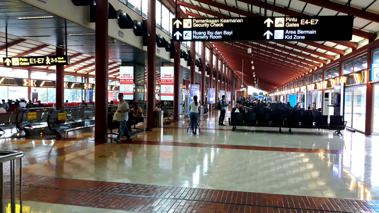 pk;bx2CP8 二航廈雖不及三航廈新穎,但處處可見印尼風情的裝飾