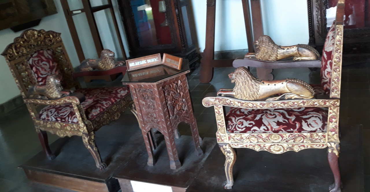 {qh`8 h3JIiwv0! 庭院旁的展館,有一些以前留下的文物,例如歷代蘇丹的王座