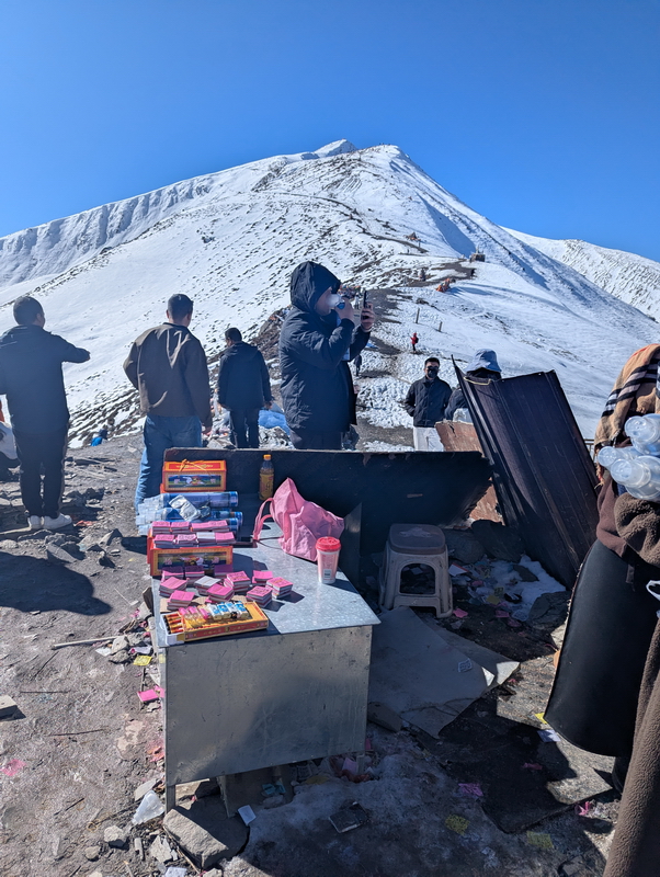 3 D aZ$5" 遊客聚集自然也有臨時小販, JO*/UC>" 包含氧氣瓶、「隆達」(另稱風馬紙,藏區撒向天空祈福)等等。 5D.Sg;\ iGSA$U P| 折多山上待了一陣子後下行, d!w3LwZ 走另一條直線踏雪步道。 Q^ZM| (s# *L9v(Kc ;p2b^q' 1